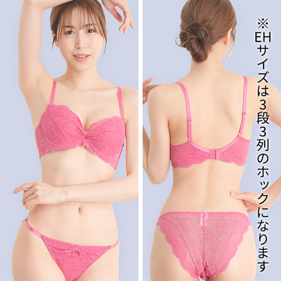 - L字ソフトワイヤー – 前中心が低く、当たりがソフトなL字型ワイヤーを採用。長時間着用しても痛くなりにくく、バストを中央に寄せて綺麗な谷間を作ります。