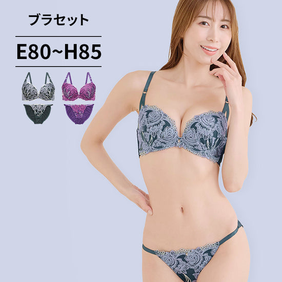 脇高ブラ&ショーツセット ローズ柄刺繍【EFGHサイズ】 ba1025