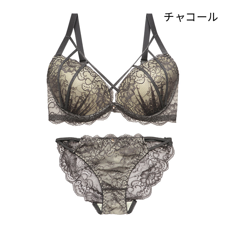 ブラ&ショーツセット 総レース×クロスストリング【EFGHサイズ】 ba1033a