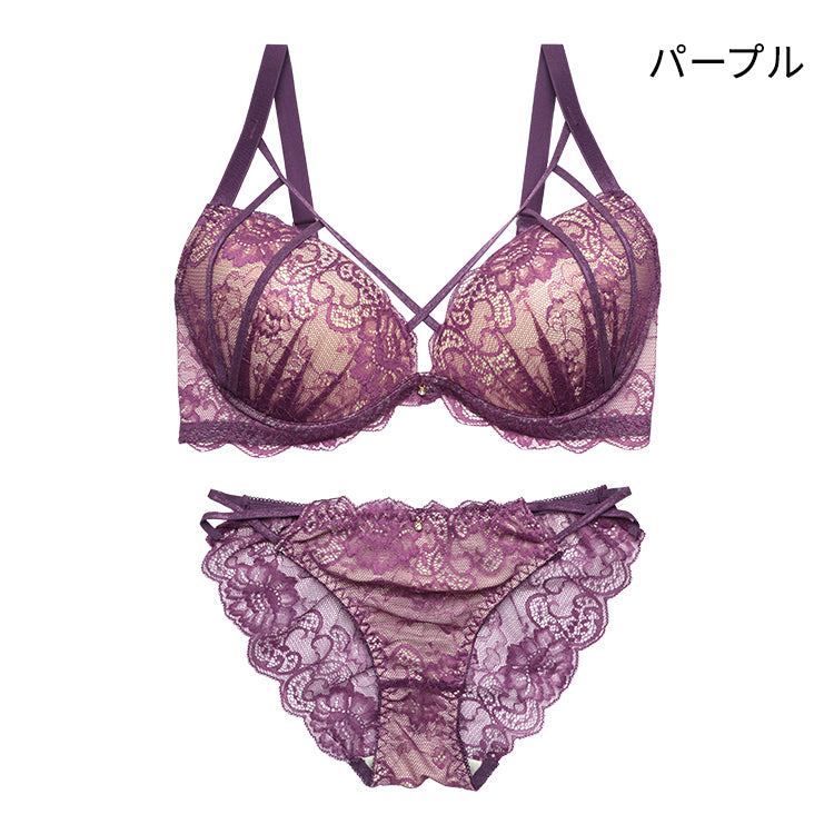 ブラ&ショーツセット 総レース×クロスストリング【EFGHサイズ】 ba1033b