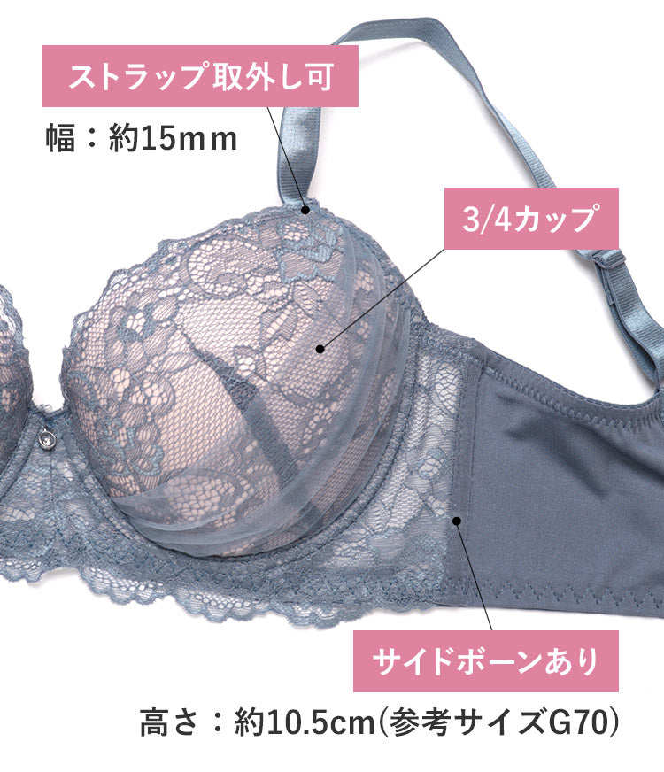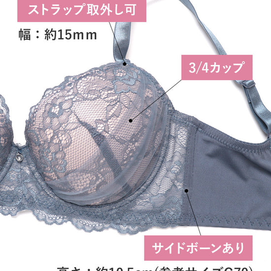 - 3/4カップ – 日本人のバストに馴染みやすく、美しいデコルテラインをキープする定番シルエットです。