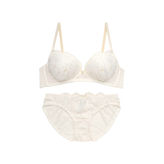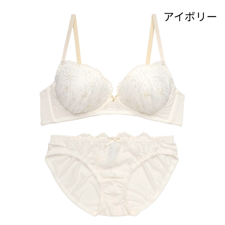【3/10より順次発送】ノンワイヤーブラ&ショーツセット 小花柄刺繍 【S/M/L/LLサイズ】 ba1044b