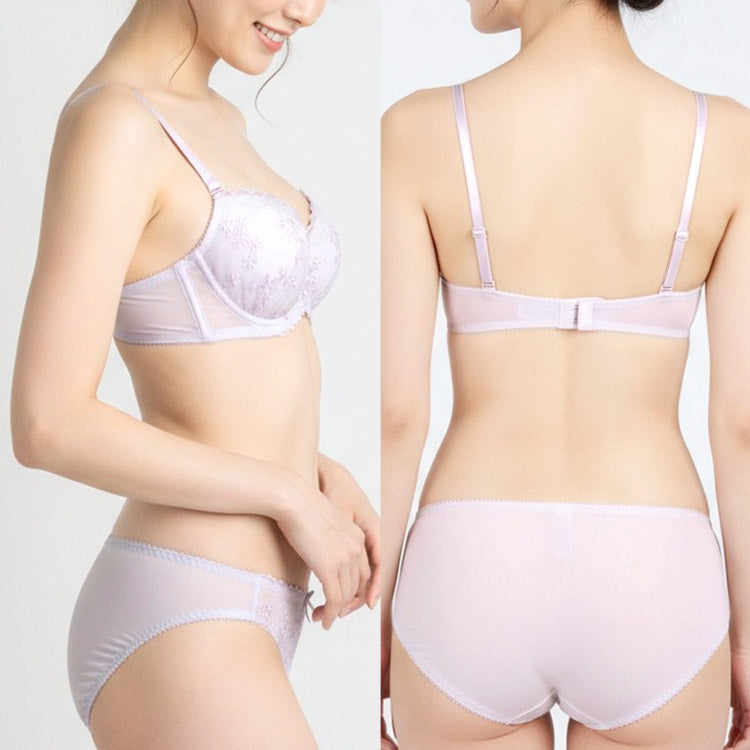 ノンワイヤーの解放感と、可憐なフラワー刺繍が織りなす大人のリラックスブラセット。