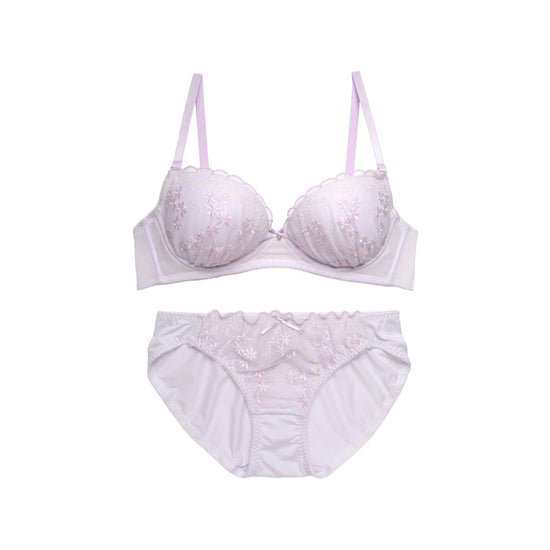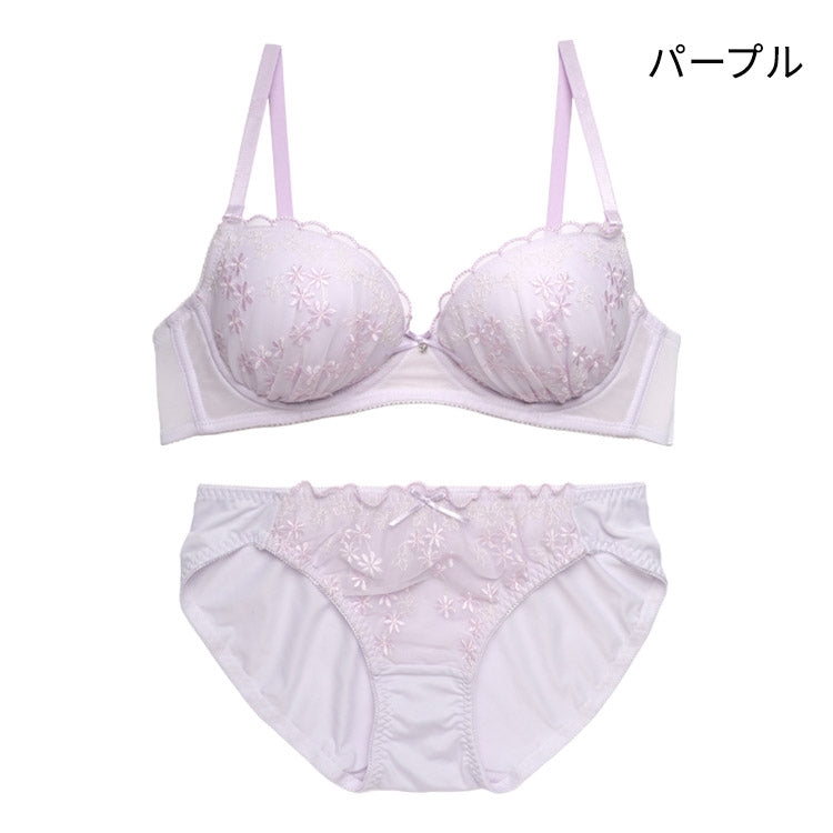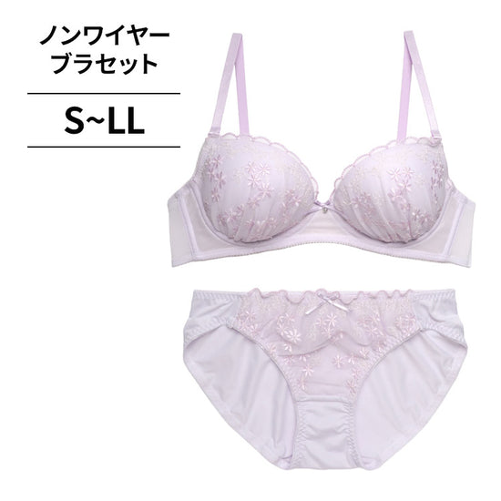 【3/10より順次発送】ノンワイヤーブラ&ショーツセット 小花柄刺繍 【S/M/L/LLサイズ】 ba1045b
