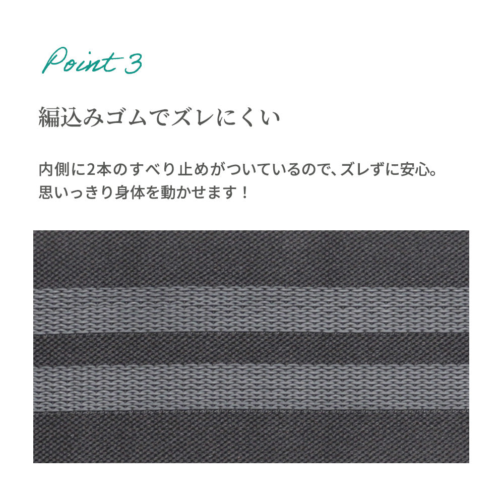 - 薄手で目立ちにくく、スポーツウェアの下にも◎
