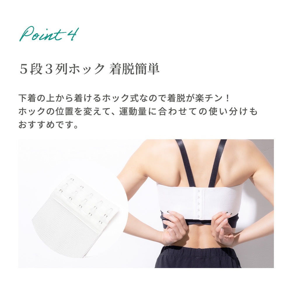 ホック式でしっかり固定できるバストサポートバンド