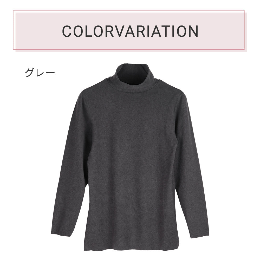 - 8分袖ハイネック – 首元まで暖かく、アウターを選ばない8分袖です。