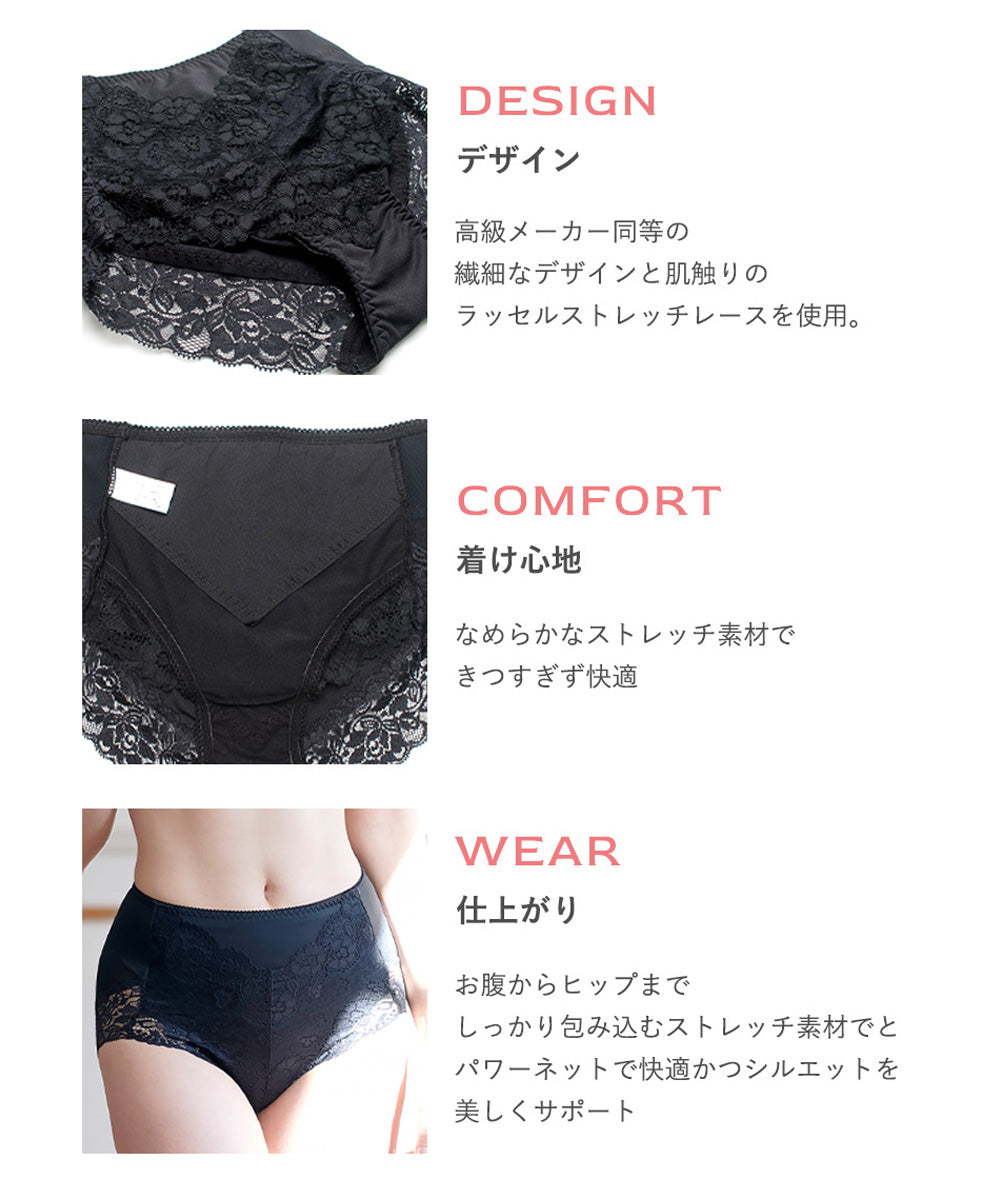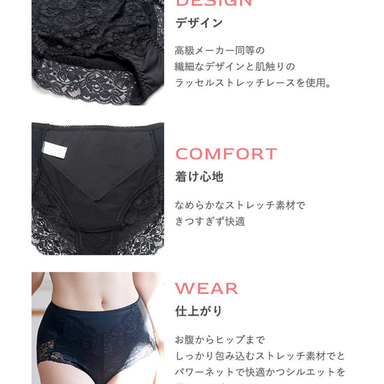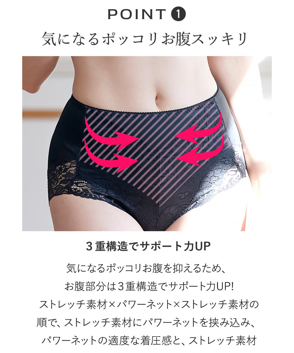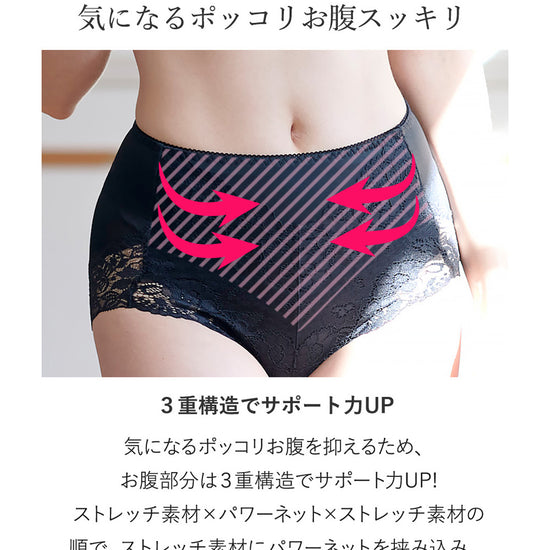 - 仕様:ショーツガードルタイプ/パワーネット内蔵(お腹・腰部)